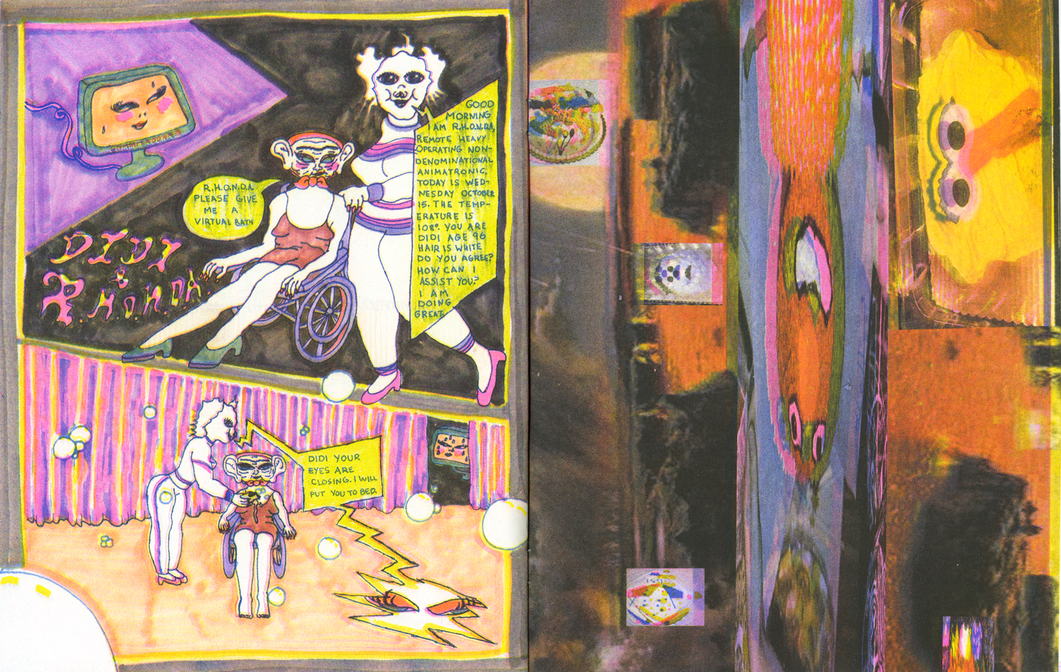 Mega Press: Excavations collects remaining unbound print spreads from out of print zine, book and print editions published by Mega Press and early pre-Mega Press experiments produced between 2010 and 2023. These sheets have been selected, collated, and bound at random, leading to unlikely combinations of work from disparate editions printed years apart. Each copy is unique.